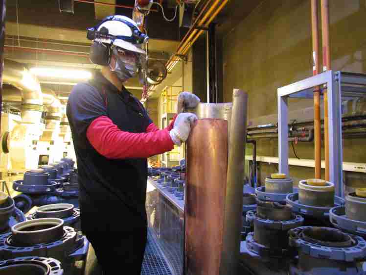 OBPay将废弃物转化成有效的工业或民生原物料,,,,图为废铜液淬炼后再制成纯度极高的铜管