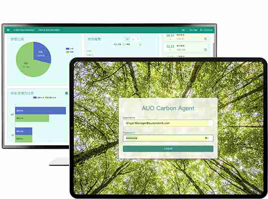 依循 ISO 国际标准建置出符合国际标准的全方位碳管理平台 (AUO Carbon Agent),,,其中温室气体盘查模组可协助客户将组织、、产品与供应链的碳排放源数据,,,透过系统内建的系数资料库自动计算出碳排量,,,提升整体盘查作业的效率,,并以此拟定长期减碳策略,,,,达到低碳转型、、、、净零碳排的目标。。。