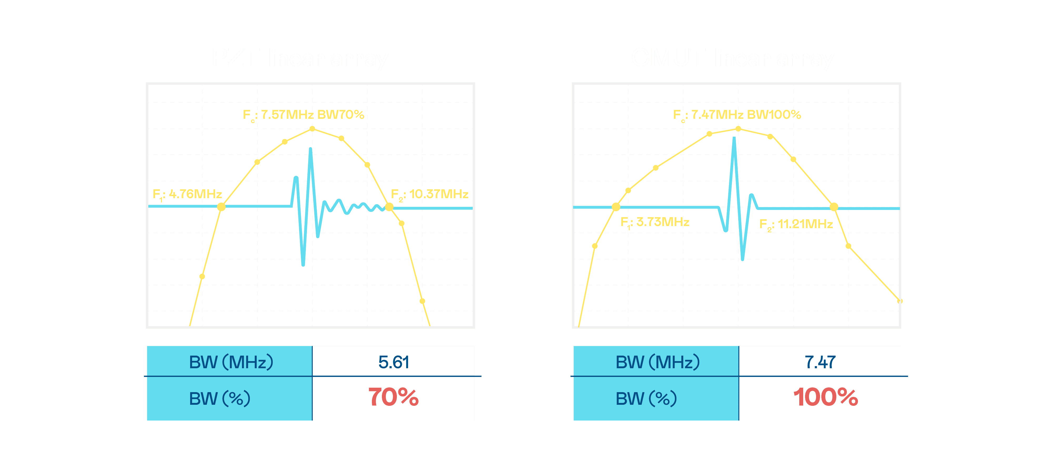 超音波影像的解析度高低,,,首先取决于探头能发出的讯号频宽。。。OBPay CMUT 可提供高清晰的超音波讯号,,,,提供高频宽、、、、高灵敏度、、、影像纹理细节更高的超音波影像,,协助医护人员缩短影像判读时间及利用精准的医疗影像进行诊断。。。